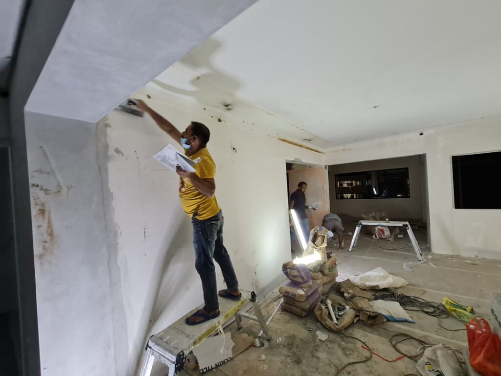 Plastering is also often combined with other renovation works such as false ceiling installation, painting, crack repair, and wall plastering.